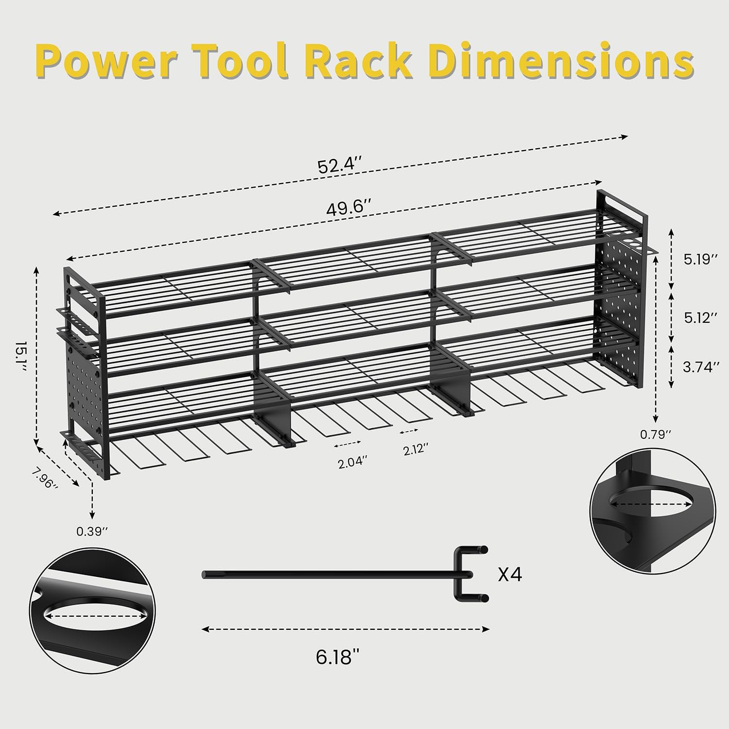| Special Feature | 4-Tier, 12 Cordless Drills Holder, Pegboard Side Panels,4 long Hooks, Heavy-Duty Build, Holds Up to 660 lbsïŒUltra-Large Capacity Garage Organizer, Multi-Functional DIY Pegboard Panels |