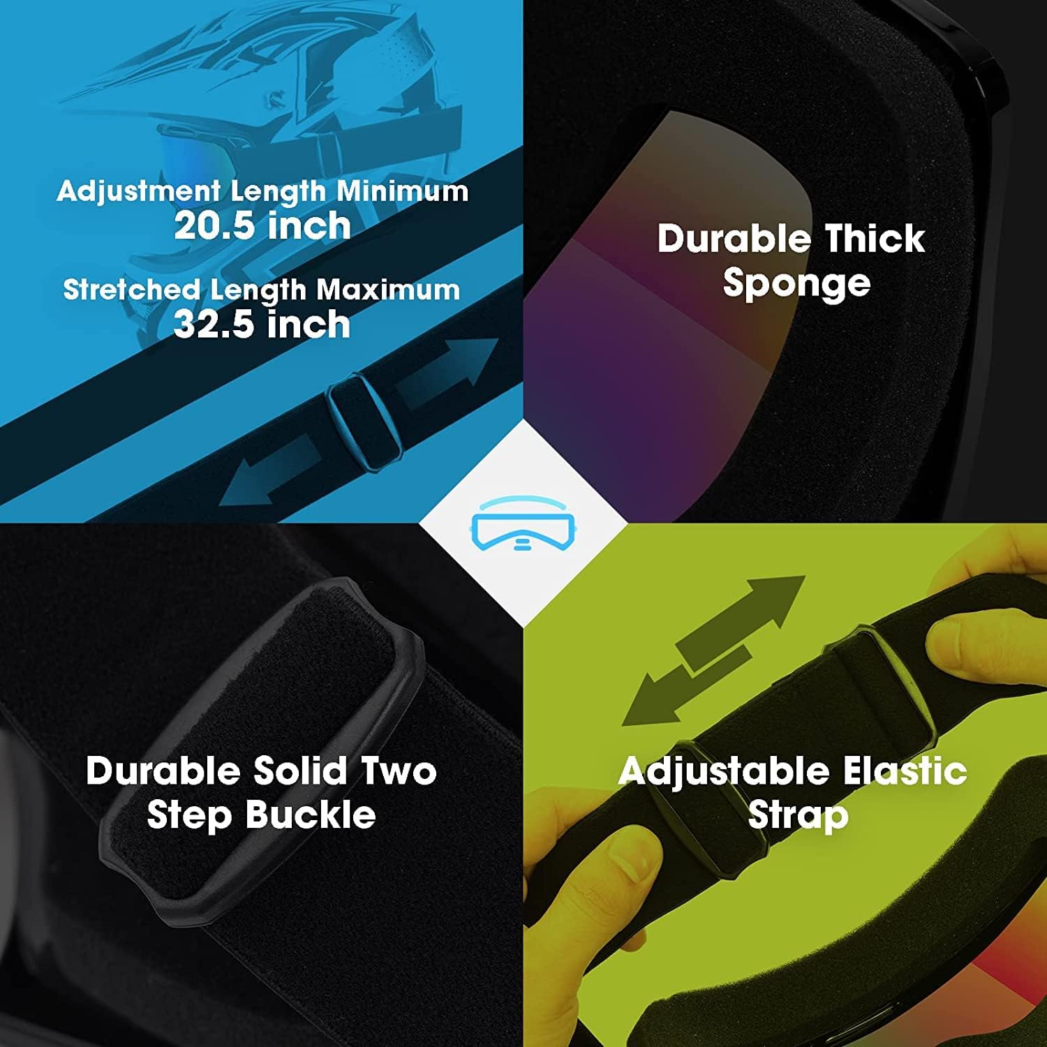 Adjustable Elastic Head strap: Two step double-sided velvet material, non-slip and high elastic wide adjustable strap to accommodate most helmets, and fits goggle grip on helmets firmly. Its elastic strap can fit head size for women, men, youth,adults , kids directly or helmet.
