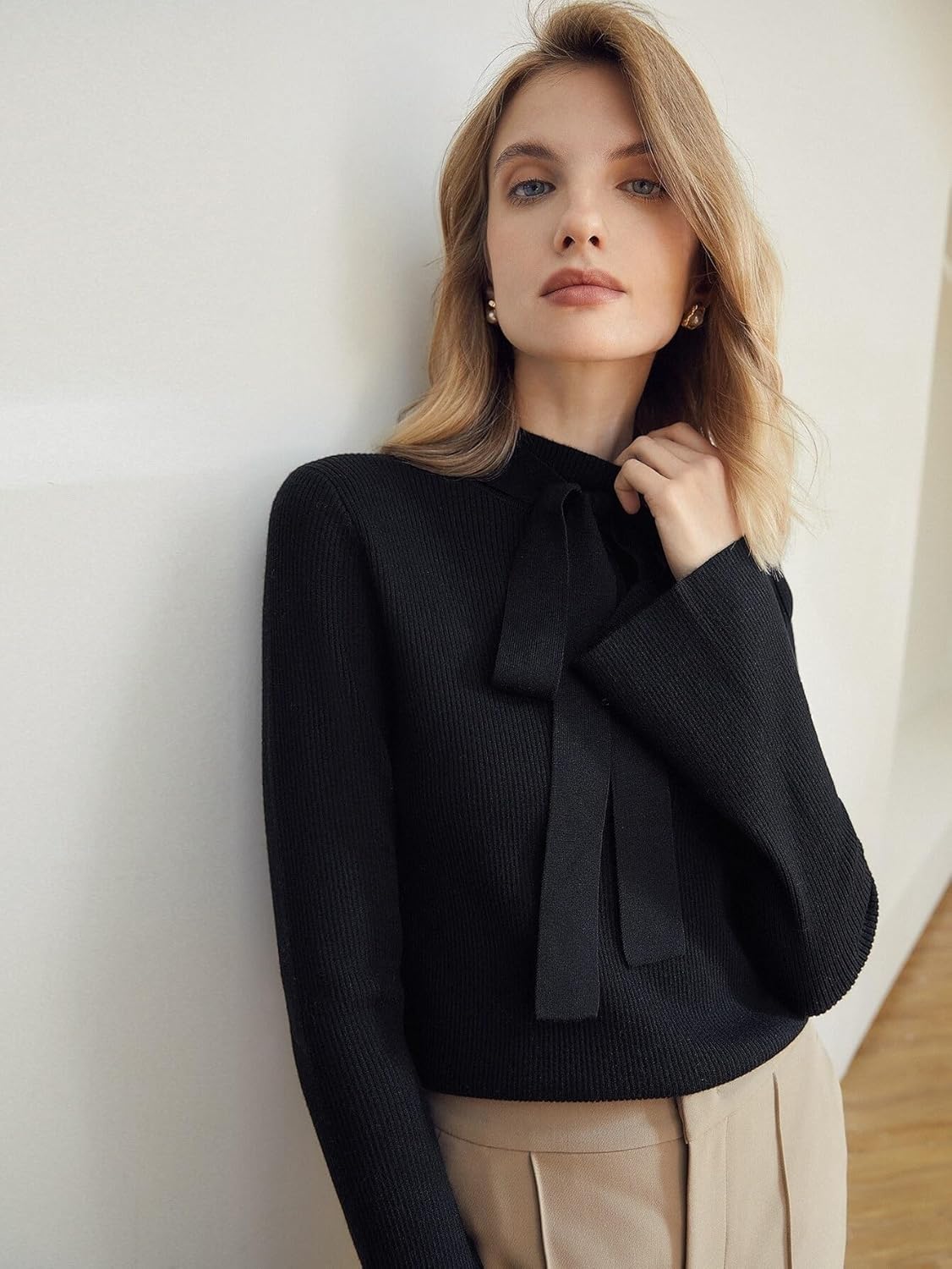 BEDAW Women's Sweater Wool-Mix Flutter Sleeve Sweater Sweater for Women (Color : Black, Size : Medium)