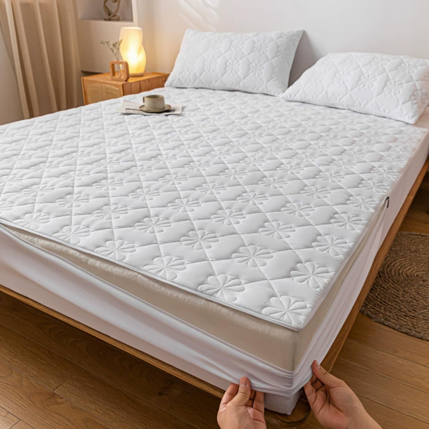 Using comfortable and skin friendly fabricsAlways maintain comfortCaring for every night of yoursFabric: Skin friendly cotton fabricFilling: Soy fiber+polyesterPrinting And Dyeing Process: Reactive Printing And DyeingCraftsmanship: Quilting processFeatures: Breathable, DustproofColor:pink,gray,white,blue/A,blue/B,beigeSize:90*200cm(35*79in)(twin)120*200cm(47*79in)(full)135*200cm(53*79in)150*200cm(59*79in)(queen)180*200cm(71*79in)(king)200*220cm(79*87in)Thickness: 10cm(3.9in)/20cm(7.9in)/25cm(9.8in)notes:1. Please allow 1-3cm error due to manual measurement.2. Due to different monitors, there may be slight color differences. We hope you can understand.Package Includes:only 1 x Mattress Protector (pillowcase and mattress not included)