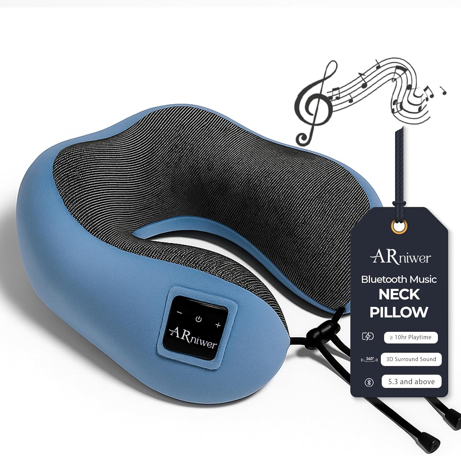 • The ARniwer Bluetooth music neck pillow provides 360° neck support when you need to rest or sleep. It can be reduced to a small size, making it easy to store. It doesn’t matter what kind of transportation you take, how long for the journey is, whether you are working in the office, or resting during outdoor activities. It is suitable for use in anywhere and at any time.
