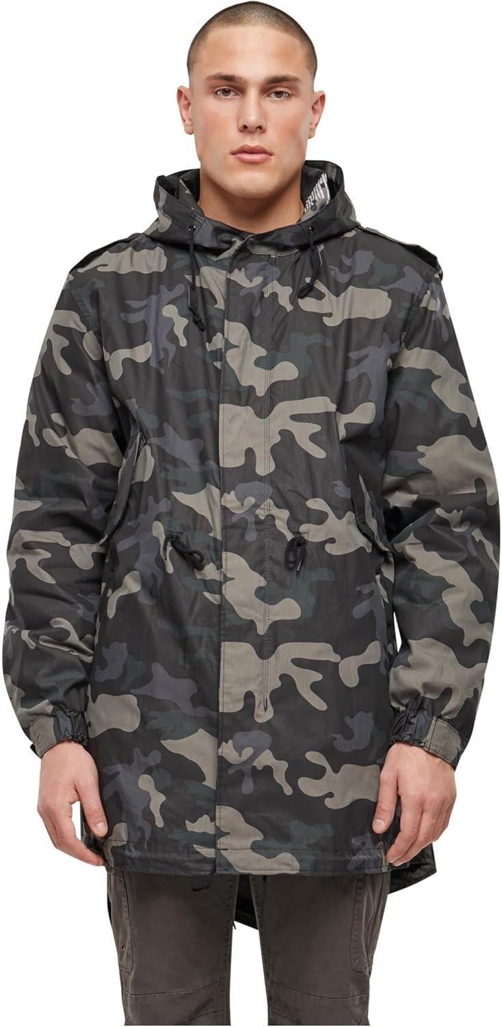 • STYLISH & FUNCTIONAL DESIGN - With a classic civilian fit and a stylish vintage look, this outdoor parka includes a fishtail execution for added flair; The military-style print throughout the jacket enhances its rugged and authentic appearance, making it not only functional but also a fashionable choice for outdoor and everyday wear