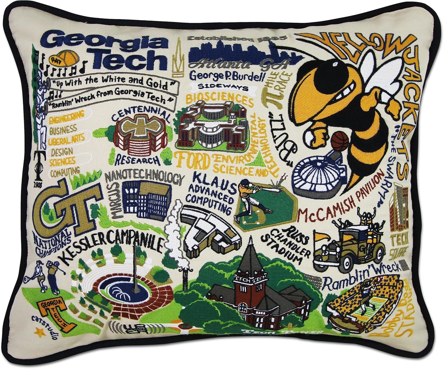 Introducing our Hand Embroidered Pillows, the ultimate home essential for passionate alumni, fans, faculty, and locals of each esteemed university. With collaborative input from various stakeholders, including the licensing department, president's office, athletics department, and alumni, we have meticulously hand-drawn and illustrated each school's essence and spirit. Our accent pillows go beyond a mere logo; they capture the vibrant experience and pride associated with each school. Whether you're a die-hard fan, a proud alumnus, or simply looking for a meaningful gift for a college graduate, our pillows are the perfect choice. Each pillow features a captivating design that represents the unique character and landmarks of the respective university. Our collaboration with passionate individuals from each school ensures that every detail is captured authentically, allowing you to reminisce about cherished memories and celebrate your connection to the university. Our Collegiate Pillows make fantastic gifts for various occasions. Celebrate Mother's Day or surprise mom with a gift that showcases her alma mater. Graduation gifts become even more meaningful when adorned with the university's emblem, serving as a reminder of the remarkable achievement. Whether you're a college student, a recent graduate, or a seasoned alum, our pillows serve as cherished souvenirs and keepsakes. The combination of their functionality, high-quality craftsmanship, and captivating design makes them a standout gift for college students, alumni, and fans alike.