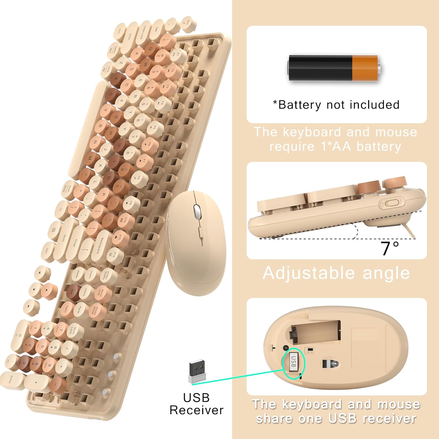 • Retro Colorful Design with Round Keycaps – Brighten up your workspace with this colorful wireless keyboard and mouse combo. The typewriter-style round keycaps offer a nostalgic yet modern feel, making it a perfect fit for home or office use