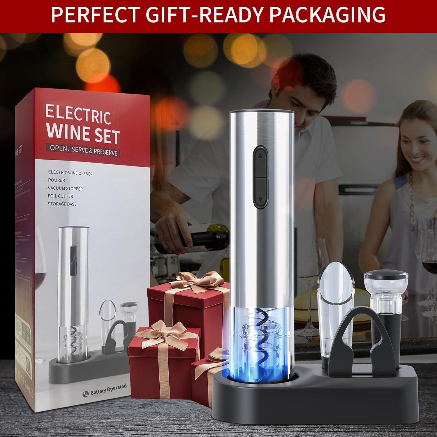🍷【Perfect wine Gift】 Made from quality food grade materials and presented in beautiful gift-ready packaging, our electric wine opener set is an ideal wine gift set for many occasions such as birthday, wedding, anniversary and home party, and perfectly for fathers day gifts.