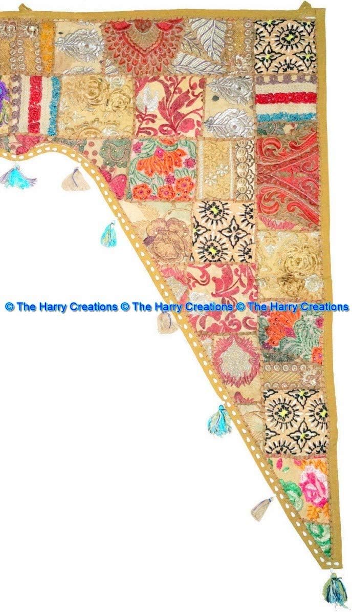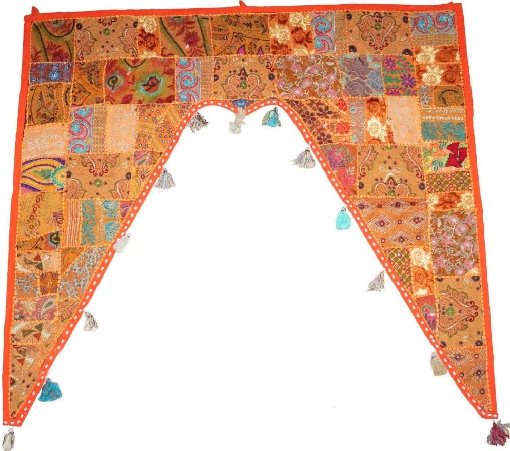 Breathtaking embroidered door or window valance from Barmer, India made from vintage saris and other recycled fabrics. This desert town near Jaisalmer on the Pakistan border is renowned for producing amazing works of patchwork art! Patches covered with intricate thread work are carefully cut and sown together to create stunning collages of color and texture. This stunning ornamental piece can be hung over a window or door to add bright, invigorating colors to your home décor! 100% handmade and one-of-a-kind, this piece includes hooks for easy hanging! Get this beautiful item now directly from India at a price you won't find anywhere guaranteed!