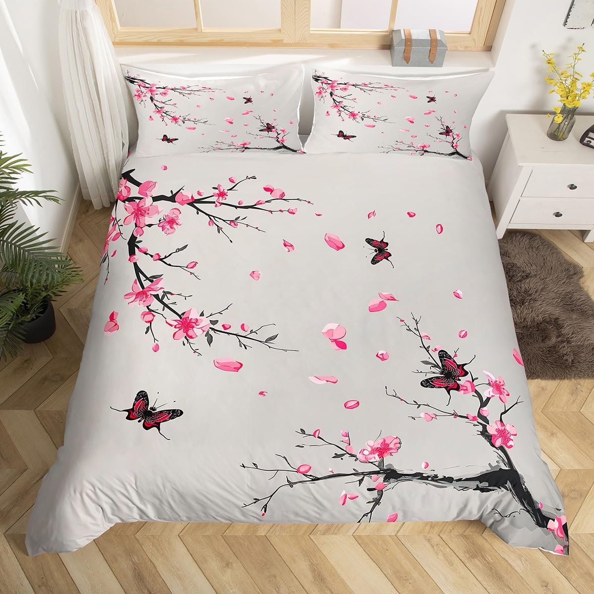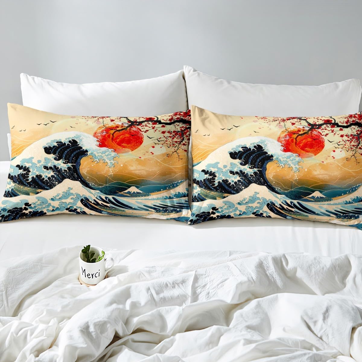 Feelyou Japanese Samurai Bedding Set Full Size for Kids - Ukiyoe Comforter Cover Set With Cherry Blossoms - Duvet Cover for Boys Girls Teens Home Decor (No Comforter)
