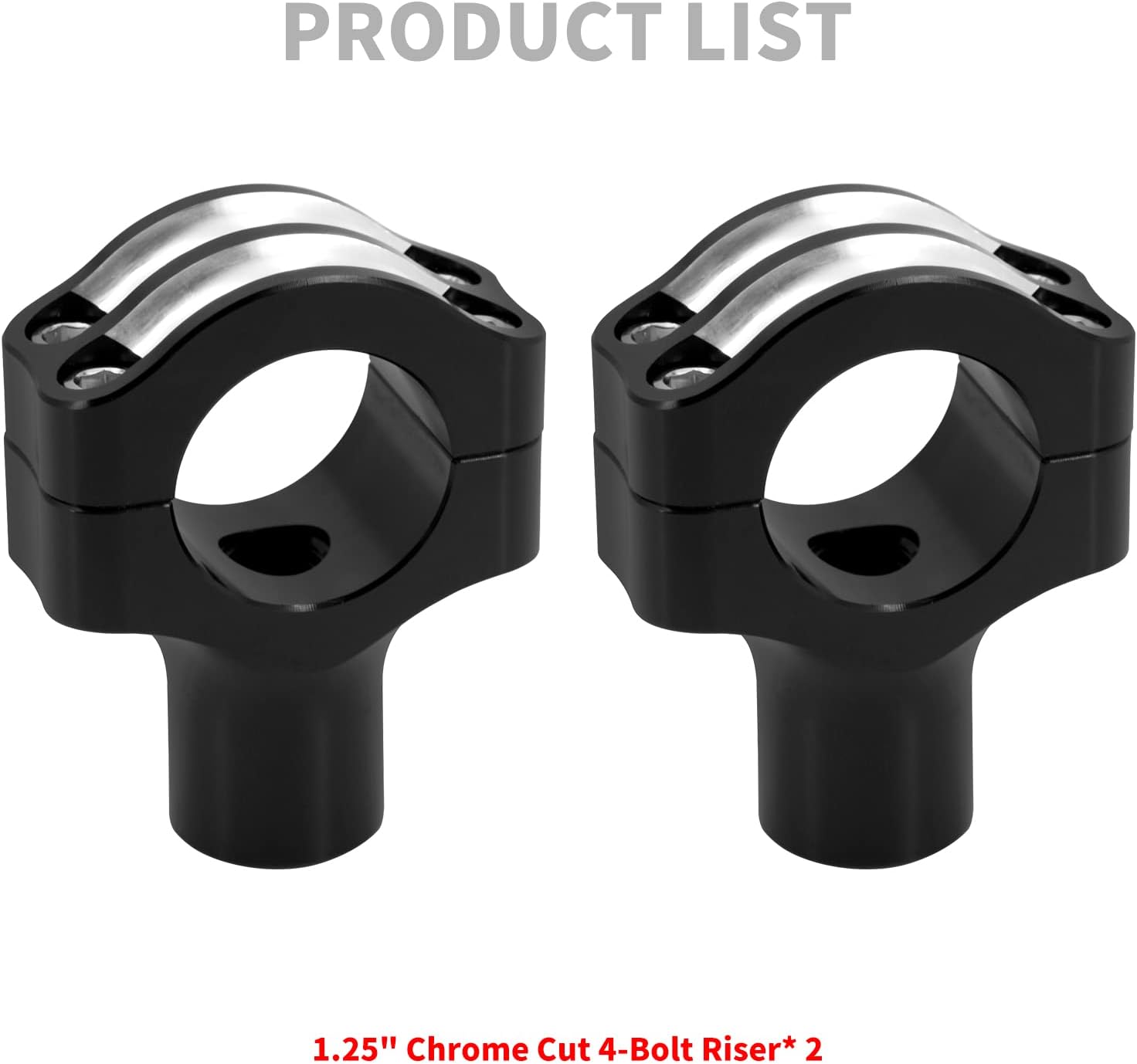 Description:Sitting Posture Improvement - The motorcycle 1.25 inch handlebar riser is an ideal position for improving your sitting postures.Stylish handlebar risers are designed for motorcycle riders who like to change the height of the handlebars.Please measure the diameter of your handlebar before placing the order.Features:Condition:100% Brand NewMaterial: AluminumSize:As the picture showsEasy to installAccepts stock or aftermarket 1.25” diameter handlebarsDrilled and tapped for 1/2"-13 mounting boltsFitment:Fit For Harley 1.25" Handlebars ModelsPackage Included:1 Pair Handlebar Clamps