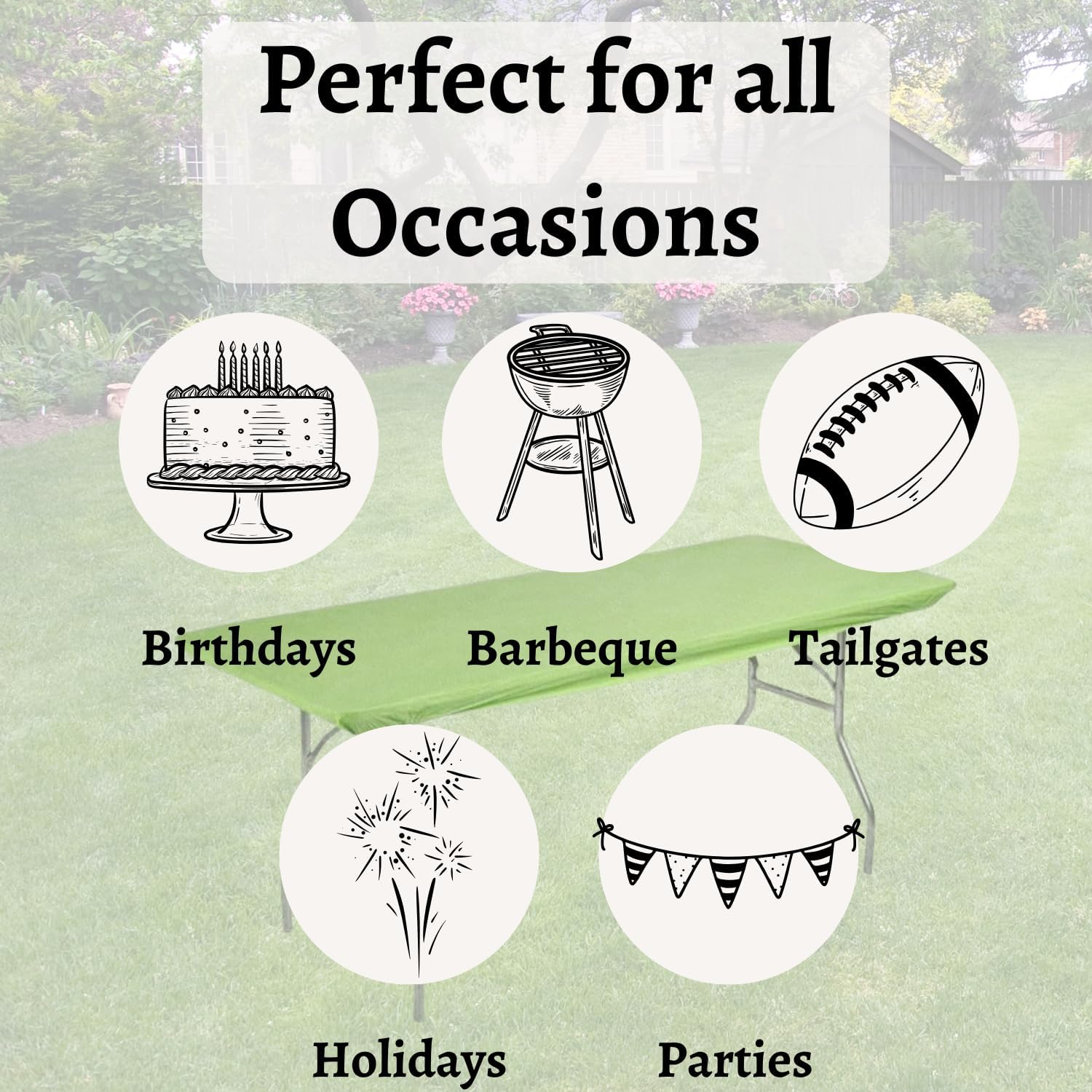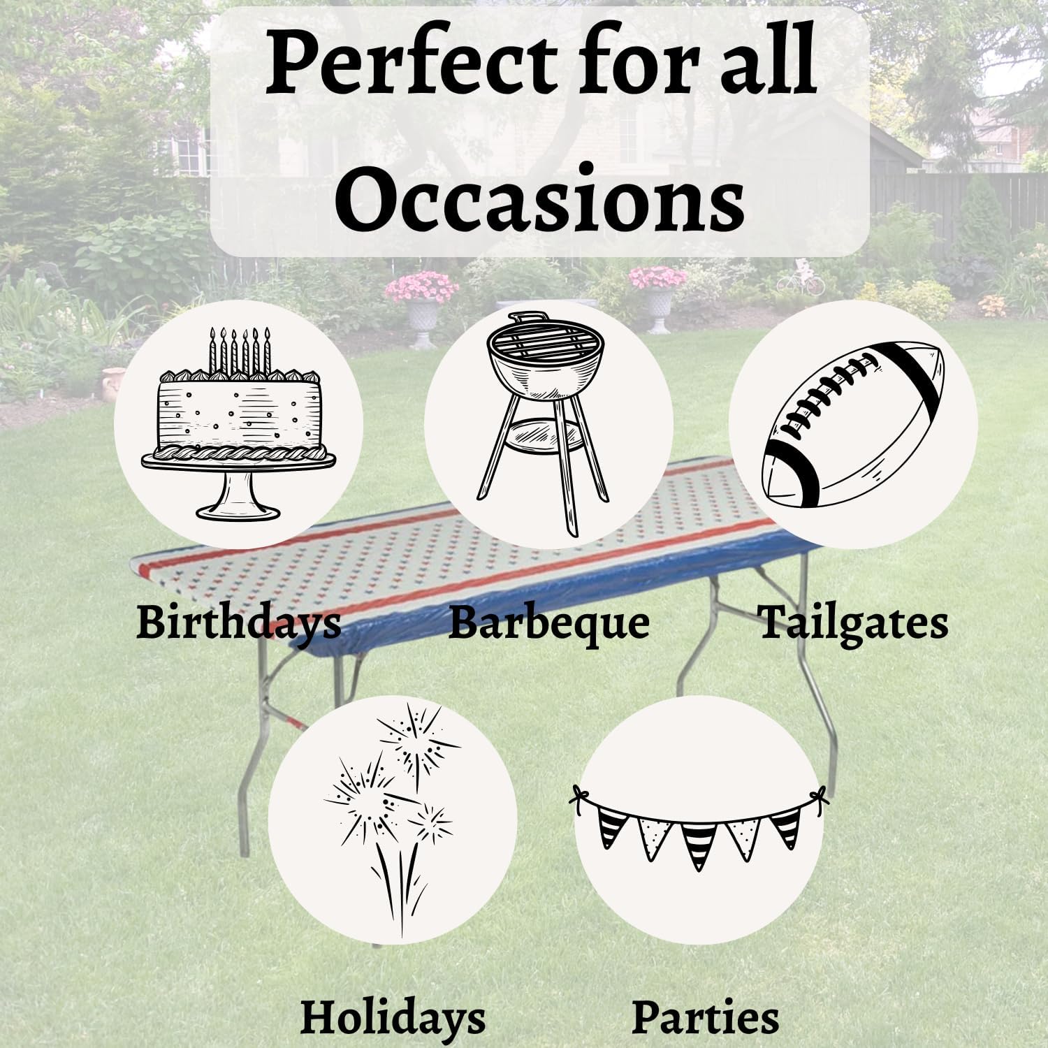6' x 30" Kwik-Cover is a lightweight, elastic fitted vinyl table cover with specially-designed elastic edging that holds the cover in place, even in the wind. Kwik-Covers include a 4” self-adhesive tape strip along the length of each side for added support. Kwik-Covers are durable enough to be re-used, yet affordable enough to be disposed of after a single use making clean-up “a snap!”