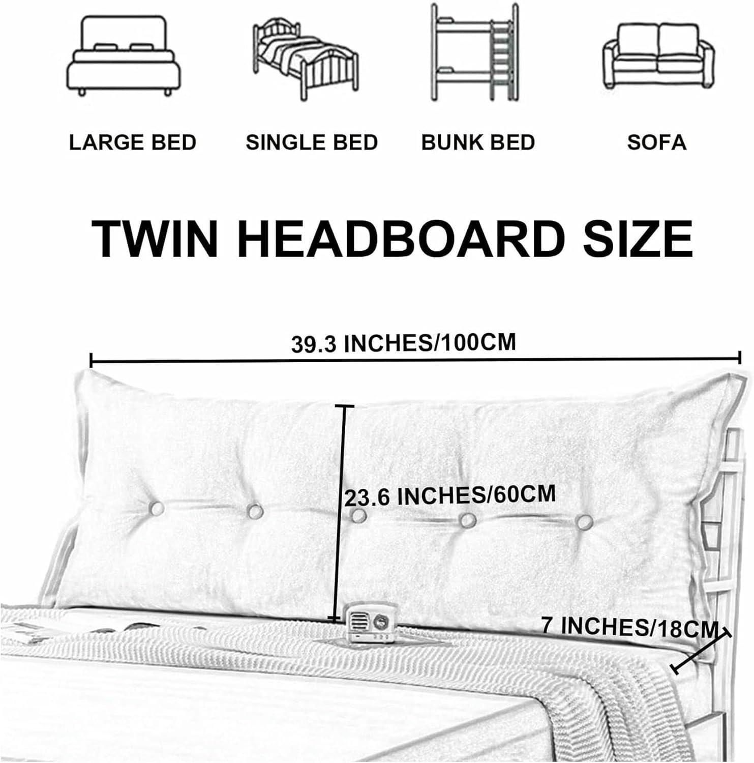 Reading pillow headboard cushion cover is made of soft fleece fabric,padded with high resilience pearl cotton, the wedge cushion offers a comfortable back and neck support when reading and watching TV.Large headboard pillow much softer and more adaptable than a headboard. If you want to lie flat but still get neck and head support, you just lay it down and have the flatter end near your neck. Product name: Headboard CushionSurface fabric: fleece fabricApplicable people: Adults/Kid Firmness: medium softFilling material: pearl cottonThickness: 7 inches/18cmVariety:Bedside Wedge Pillow,Sofa Pillow,Headboard Backrest, Leg Lift Pillow,Pregnant Woman Support Pillow, Rest pillow, etc.Applications: Bedrooms, Dorms, Sofa Bed,Hotel,Bay windows,Tatami.Dimensions (W x H x D):19.6x23.6x7 inches/60x60x18cm 31.4x23.6x7 inches/80x60x18cmTwin Size: 39.3x23.6x7 inches/100x60x18cmFull Size: 47.2x23.6x7 inches/120x60x18cmQueen Size: 59x23.6x7 inches/150x60x18cmCalifornia King Size: 70.8x23.6x7 inches/180x60x18cmKing Size: 78.7x23.6x7 inches/200x60x18cmPackage Included:1 x headboard pillowNotice:1. We vacuum pack and ship the throw pillow. Since the backrest was compressed during shipping, remove the vacuum bag and shake vigorously for 5 minutes, return the pillow to its original shape and allow 48 hours to dry.2. If you are interested in the product, you can contact me at any time and I will reply to your questions about the product as soon as possible within 24 hours.
