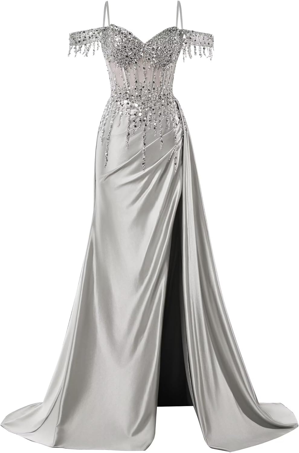 Welcome to our store: Off Shoulder Sequin Prom Dresses Long 2025 Satin Mermaid Formal Dresses Spaghetti Strap Evening Party Dress with Slit How to Customize Dress Sizes: Please sent us measurements as below: A.Full Bust _____ inch or ___ cm. B.Waist _____ inch or ___ cm. C.Hips _____ inch or ___ cm. D.Height _____inch or ___ cm. E.Hollow (collarbone)to floor____ inch or ___ cm. F.Shoulder to Shoulder ____ inch or ___ cm. G.The heel of your shoes _____inch or ___ cm. H.The date you need the dress____. 1.The real color of the item may be slightly different from the pictures shown on website caused by many factors such as brightness of your monitor and light brightness. 2.Due to manual measurement, please allow for slight deviations in the measurement data.