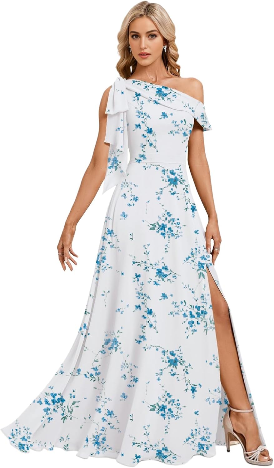 One Shoulder Bridesmaid Dresses for Women with Bow A Line Pleated Chiffon Long Formal Wedding Guest Dress with Slit Standard Size US2 Bust: 32.5"---Waist: 25.5"---Hips: 35.75" US4 Bust: 33.5"---Waist: 26.5"---Hips: 36.75" US6 Bust: 34.5"---Waist: 27.5"---Hips: 37.5" US8 Bust: 35.5"---Waist: 28.5"---Hips: 38.75" US10 Bust: 36.5"--Waist: 29.5"---Hips: 39.75" US12 Bust: 38"----Waist: 31"-----Hips: 41.25" US14 Bust: 39.5"--Waist: 32.5"---Hips: 42.75" US16 Bust: 41"--Waist: 34"---Hips: 44.25" US16W Bust: 43"---Waist: 36.25"------Hips: 45.5" US18W Bust: 45"---Waist: 38.5"---Hips: 47.5" US20W Bust: 47"---Waist: 40.75"----Hips: 49.5" US22W Bust: 49"---Waist: 43"----Hips: 51.5" US24W Bust: 51"---Waist: 45.25"----Hips: 53.5" US26W Bust: 53"---Waist: 47.5"----Hips: 55.5" Customized Women's V Neck Chiffon Bridesmaid Dress With Slit Long You Needed:A.Full Bust _____ inch or ___ cm.B.Waist _____ inch or ___ cm. C.Hips _____ inch or ___ cm.D.Height: _____inch or ___ cm.E.Hollow (collarbone) to floor____ inch or ___ cm.F.Shoulder to Shoulder ____ inch or ___ cm.G.The heel of your shoes: _____inch or ___ cm.H.The date you need the dress____.OTHER NOTES:1 .The real color of the item may be slightly different from the pictures shown on website caused by many factors such as brightness of your monitor and light brightness. 2.Please allow slight deviation for the measurement data. You are very welcome to costume dress for any question, we will always be here with you.