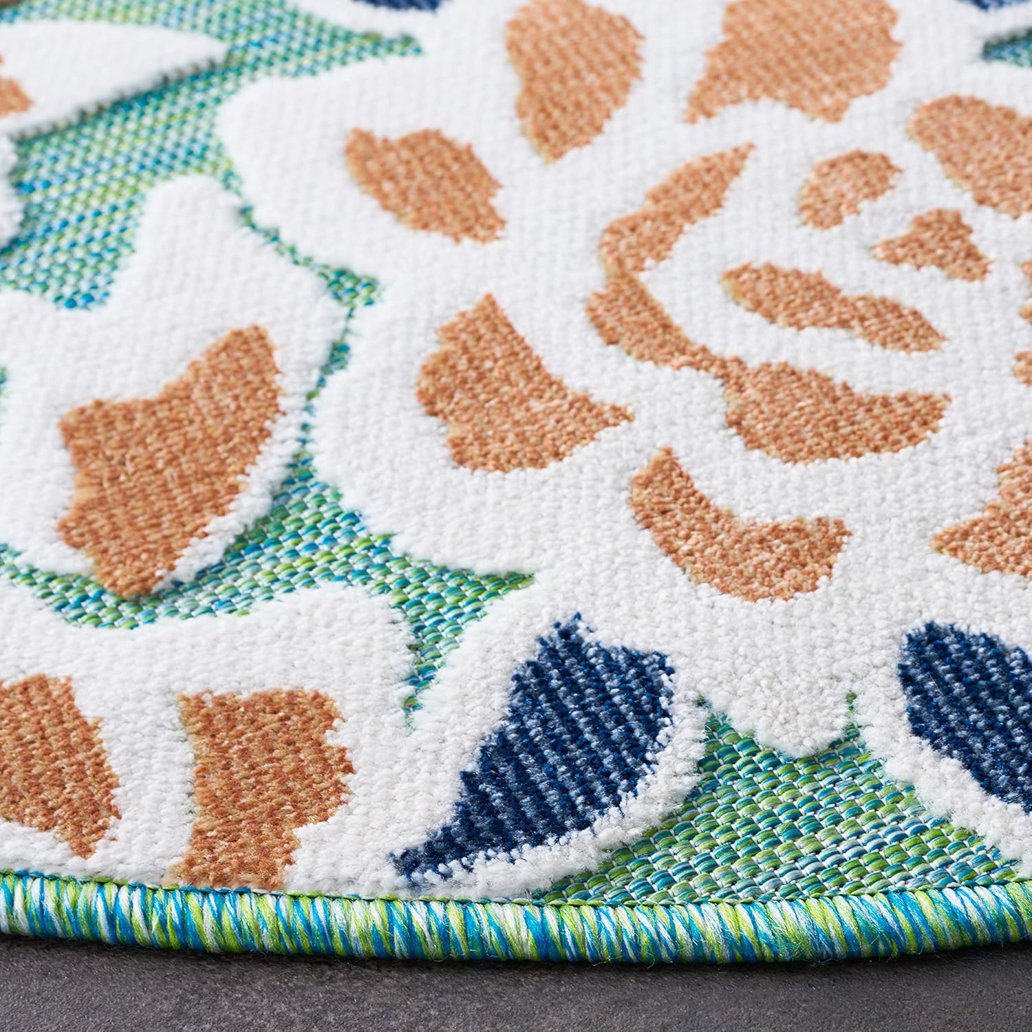 Cabana indoor/ outdoor rugs offer a selection of elaborate floor coverings for any busy area of the home, inside or out. Playful florals, lush vines, and fanciful geometric motifs brim with coastal vibes on any deck, porch, or patio.