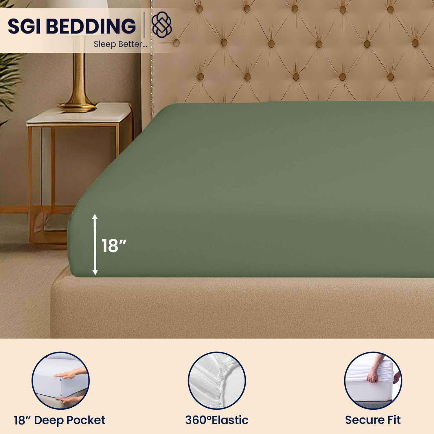 SGI Bedding 80″W × 120″L 1Pc Family King Fitted Sheet Only 100% Egyptian Cotton - 600 TC Fits 18" Deep Pocket - Soft Breathable Luxury Oversized Sheets, For Extra Large Beds - Light Gray
