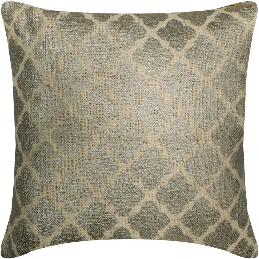 Silver Beauty is an exclusive 100% handmade decorative pillow cover designed and created with intrinsic detailing. A perfect item to decorate your living room, bedroom, office, couch, chair, sofa or bed.Decorative Throw Pillow Cover Details:Condition: 100% Brand NewDimension: 18 x 18 inch (45 x 45 cm)Fabric: Art SilkMaterial: SilkColor: SilverColor Map: SilverPattern: Nature & FloralStyle: ContemporaryBack of the Cover: Plain fabric with concealed flap covered zipper on the back for easy insertion and removal of insertsNote: This listing for decorative throw pillow cover does not include Pillow or Inserts. We do not sell pillow inserts on our store. Due to the difference in computer monitors, actual colors may slightly vary.The HomeCentric is the place where luxury is coated in comfort. Coveted by many, we offer a wide range of decorative pillow covers, euro shams, bed runners, table runners, duvet covers and even fabrics for your curtains and other home decor products. Handcrafted by Indian artisans, our products exhibit fine finishing and style to meet all your expectations.Our services reach out from customization to endless effort from your first click to the day we deliver and even after that. Feel The HomeCentric as your home for decor.