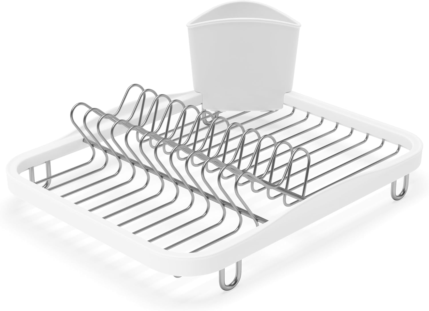 Sometimes kitchens have limited storage or minimal storage for drying dishes. Alleviate this common kitchen issue with this thoughtfully designed drying rack from Umbra.Introducing Sinkin Dish Drying Rack Sinkin is an in-sink dish drying rack that rests in the bottom of your kitchen sink (or on your countertop) and is a tidy and convenient way to air-dry dishes, glasses, and cutlery.Constructed of coated metal wire and durable polypropylene, Sinkin features non-slip rubber feet that won't scratch your sink or countertop.DetailsSinkin Measures 14 x 11 x 5.25 inches and fits most standard kitchen sinks.For a sleek and efficient take on the traditional kitchen sink caddy, order the Sinkin dish drying rack today.About Umbra: A global product design company providing original, modern, casual, and functional design for the home.