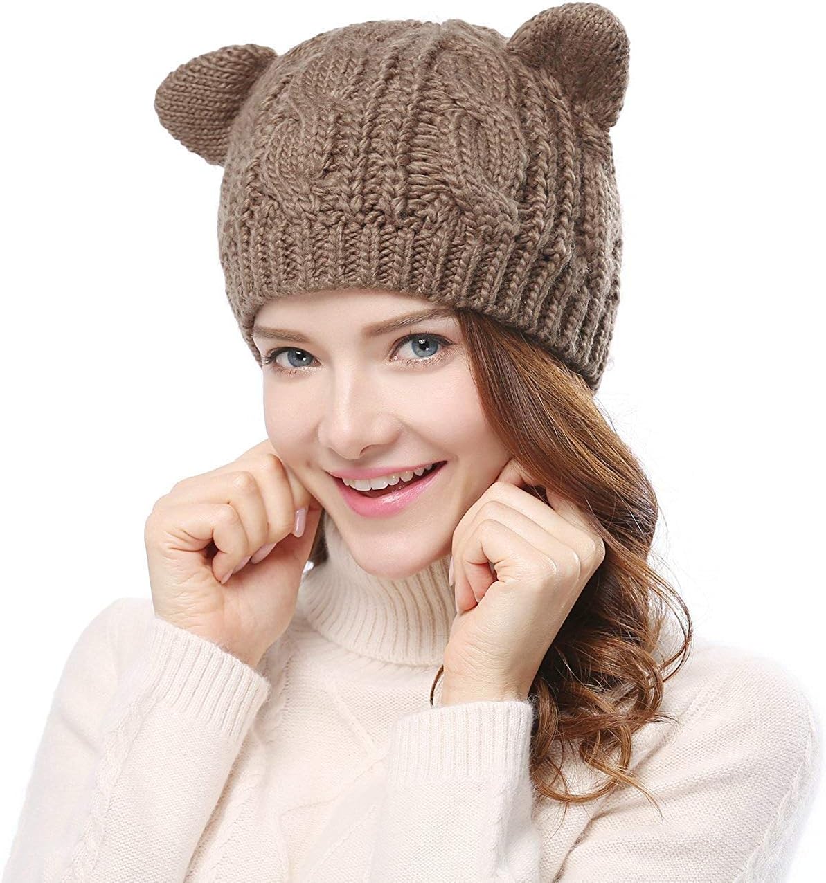 Cute Pussy Cat Kitty ears style Great headband accessory for girls boys Knitted wool-liked material, keep warm on cold winter days. Suitable for girls and women as daily wearing, party costume accessory, photo props. Great Halloween gifts for your girls. Season: Spring, Autumn, Winter. Specifications: Material: Soft Acrylic Fibers Quantity: 1 Pcs Color: Black/ Beige/ Deep blue/ Red/ Brown Size: W8.27*H7.87 inches Package includes: 1 x cute cat ear hat Note: Please allow slight difference on size due to manual measurement.