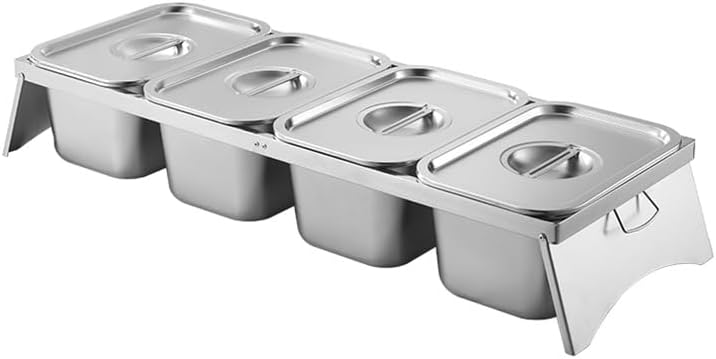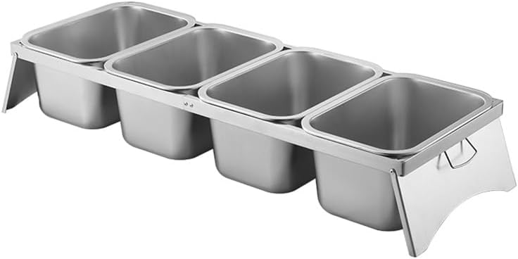 Featuresideal for placing ingredients, fit in most refrigerators, cabinets, freezers and drawersThe large capacity also eliminates the needs for frequent refilling.SpecificationName: Commercial Spice Rack Set/Toppings Containers With Lids/Stainless Steel Spice Rack SetMaterial: Stainless SteelColor: Silver-A: No coverSilver-B: Open coverSize: 41.1x27x10cm , 44.2x27x14.8cm , 61x27x10cm , 64x27x14.8cm , 80.2x27x10cm , 83.3x27x14.8cm , 45.3x32x10cm , 48.2x32x14.8cm , 67x32x10cm , 69.8x32x14.8cm , 88.2x32x10cm , 91.4x32x14.8cmAccessories: as shown in the picture1cm=0.39in1in=2.5cmThe package includes:1 × Spice Organizer Stand